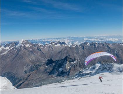 Durchatmen, mit einem seichten Wind im Gesicht am Startplatz stehen und nach ein paar Schritten den Boden verlassen umsich mit seinem Gleitschirm frei durch die Luft zu bewegen - was kann es schöneres geben?In den letzten Jahren hat sich bezüglich der Sicherheit und dem Gewicht der Ausrüstung zur Freude vieler Piloten einiges getan.Die Träume vieler Bergsteiger aus der Anfangszeit des Gleitschirmsports, die Passion des Bergsteigens mit der Leidenschaftfürs Fliegen zu verbinden, werden nun wahr. Nach einer anspruchsvollen Besteigung, am Gipfel angekommen den Gleitschirmauszupacken und sich wohlverdient in die Lüfte zu schwingen. Das ist für mich die Superlative an Bergerlebnis.Hike&Fly Touren:Jungfrau 2011Nadelhorn 2016Voraussetzungen:Neben entsprechender Flugerfahrung und einem guten Gespür für den Schirm sind ein vernünftiger Umgang mit denalpinen Gefahren und ein professionelles Risikomanagement absolut unerlässlich für Hike&Fly Touren im Hochgebirge. ImRahmen der hier angebotenen Hike&Fly Touren betreue und führe ich Dich in meiner Funktion als Bergführer während desAufstiegs und im Falle einer Entscheidung gegen den Start selbstverständlich auch im Abstieg. Als brevetierterGleitschirmpilot bist Du jedoch selbst verantwortlich für alle fliegerischen Tätigkeiten.Ramenbedingungen:Um das Wetter optimal nutzen zu können, machen wir jeweils nur den Termin und ein bevorzugtes Ziel ab. Etwa zwei Tagevor der Tour machen wir dann gemeinsam ein Wetter Briefing und wenn nötig werden wir kurzfristig auf ein Alternativzielumschwenken. Der Tagessatz für geführte Hike&Fly Touren im Hochgebirge liegt in der Regel bei CHF 650,- je nach Tourwird ggf. zum Gipfeltarif des schweizer Bergführerverbands abgerechnet.Galenstock 2016Grand Combin 2016Wildhorn 2016Rimpfischhorn 2016Alphubel 2015